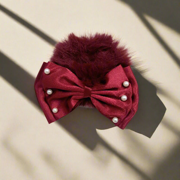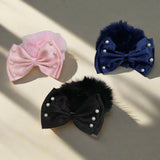 AM1279 BIG Bow Soft Fur Elastic Hair Band With Pearl ,Hair Band for Girls, Women's and Kids Baby Toddlers 1pc