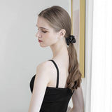 AM1285 Black Silk Hair Ties for Women Girls with Elastic Band - 1pc