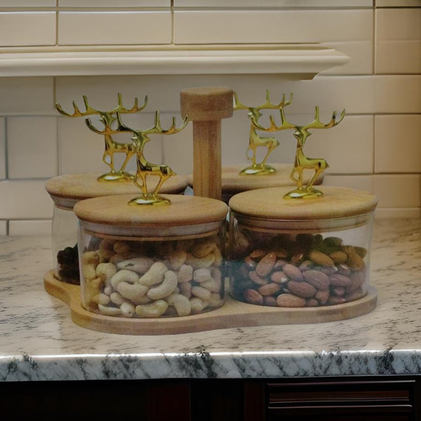AM2650 Glass Jar Set with Tray rotating, For Dry Fruits Storage 4pcs