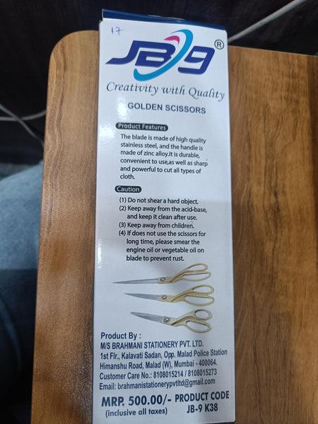 JB-9 K-38 Multipurpose Stainless Steel Gold-Plated Scissors 242mm 9.5" (1pcs)