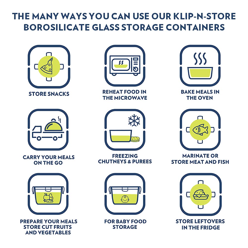 - BOROSILICATE GLASS: Store container are crafted from premium borosilicate glass, known for its extreme temperature resistance and durability, making it perfect for daily use and commuting.
