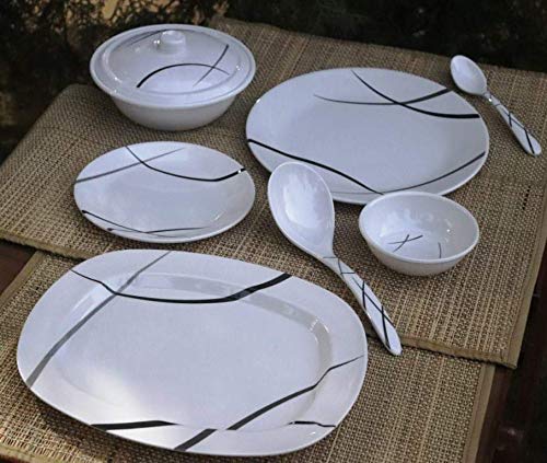 Tibros Smart Series Strokes Melamine Dinner Set White & Black 32 Pcs
