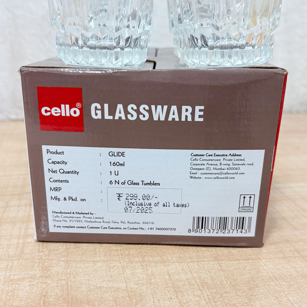 AM6617 Cello Glide P-Series Glass Tumbler Set, 160ml (Set of 6)