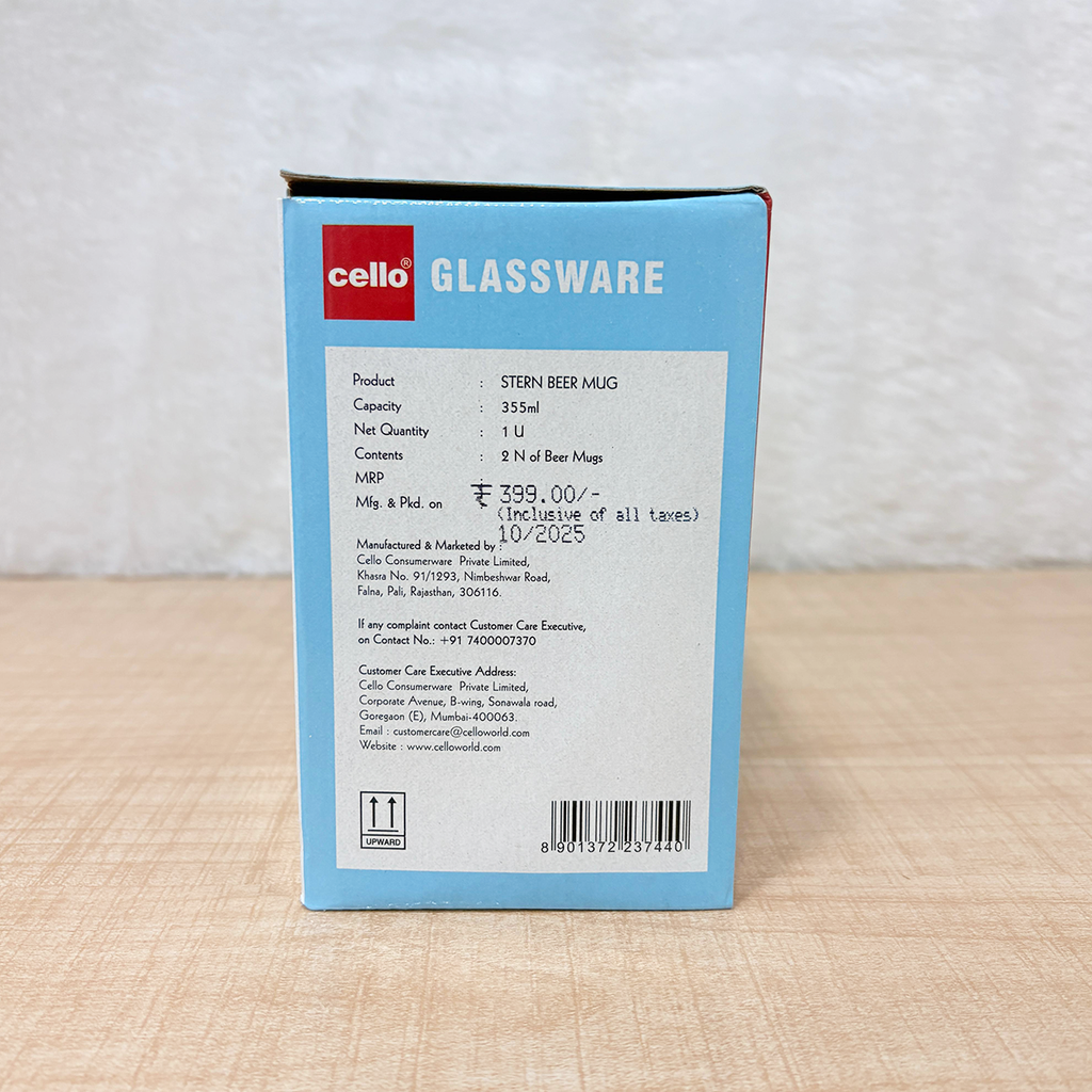 AM6654 Cello Stern Glass Beer Mug Set - 355ml (Set of 2)