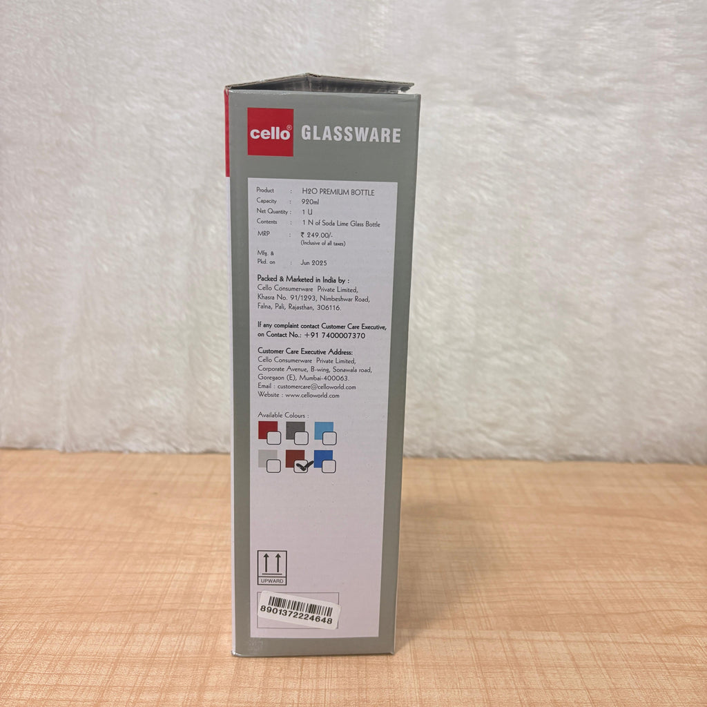 AM0665 CELLO PREMIUM H2O Glass Fridge Water Bottle with Plastic Cap 920ml