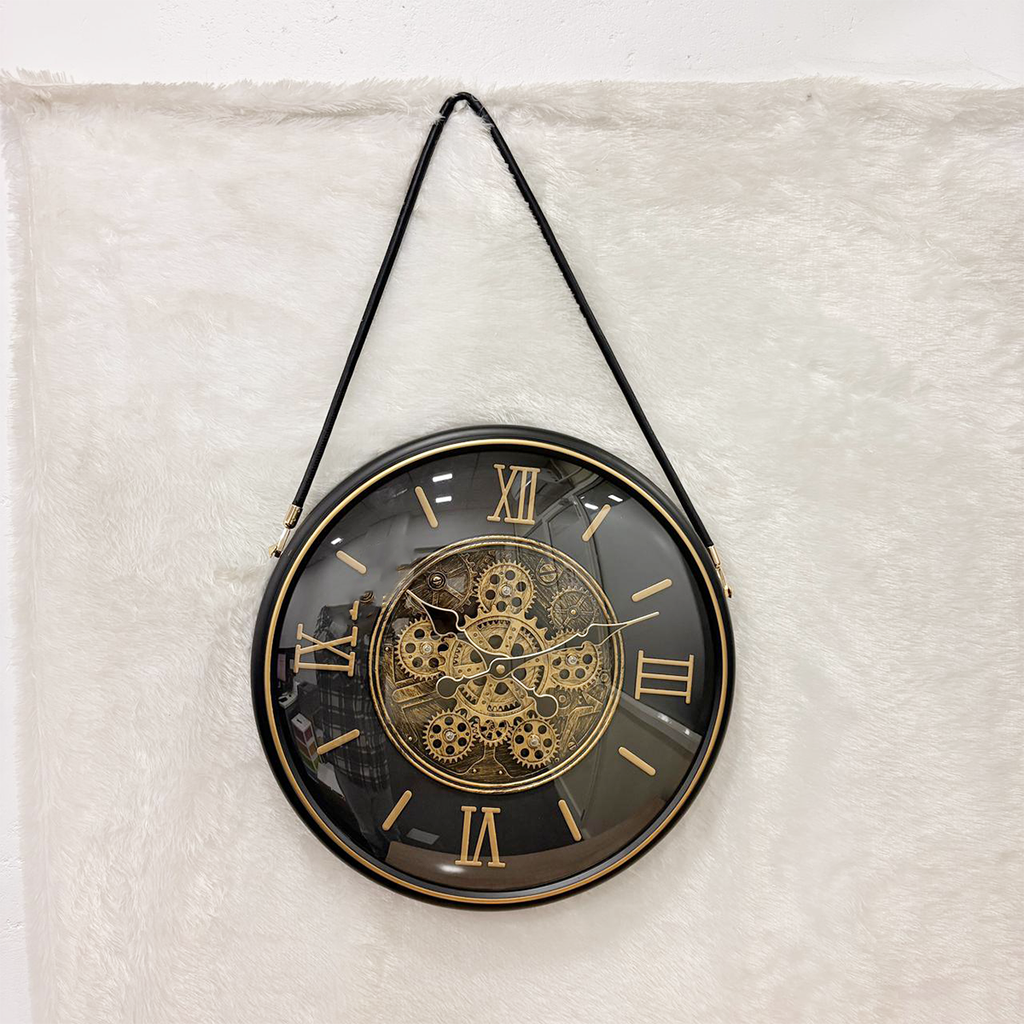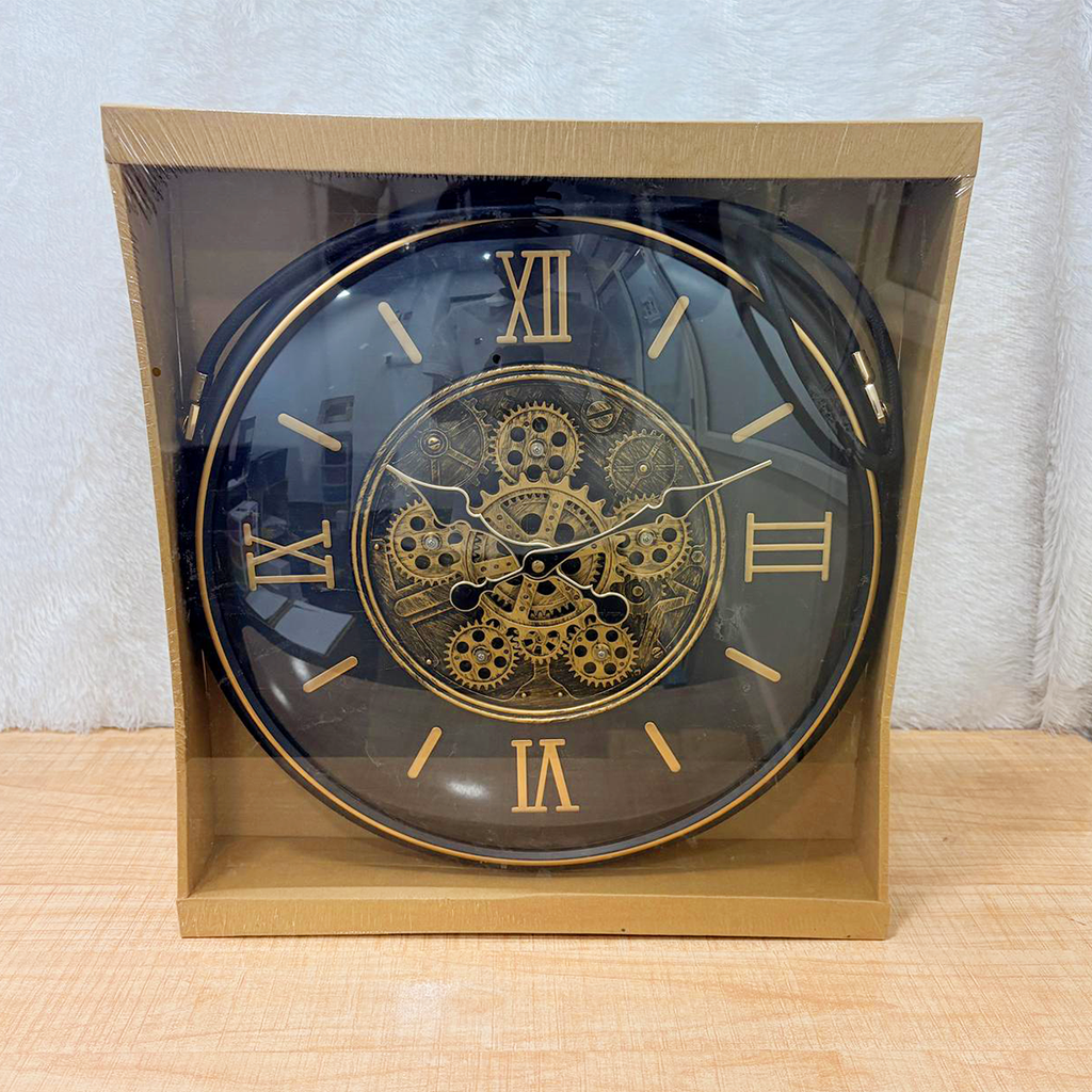 TM0105 Vintage Gear Design Hanging Wall Clock (Black & Gold)