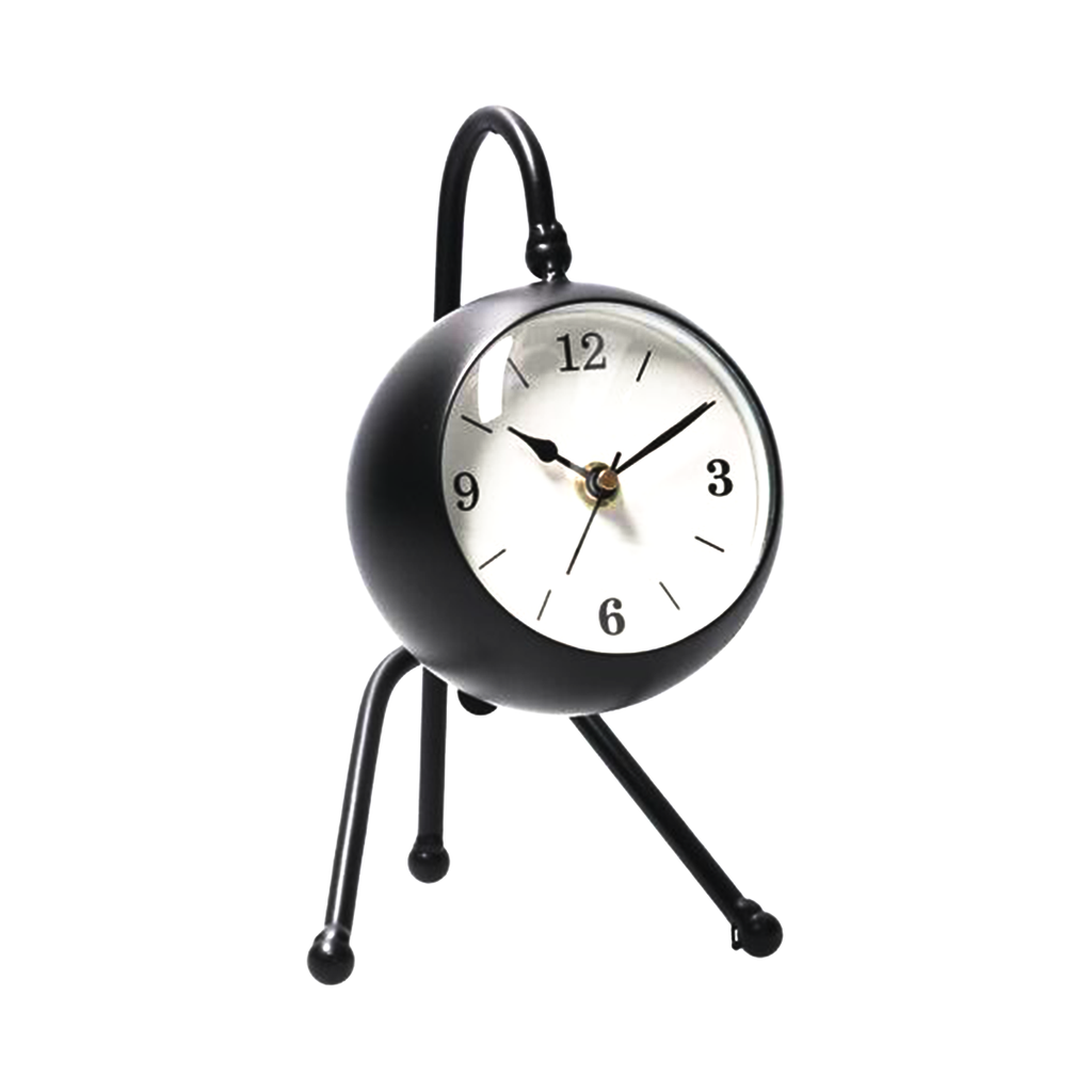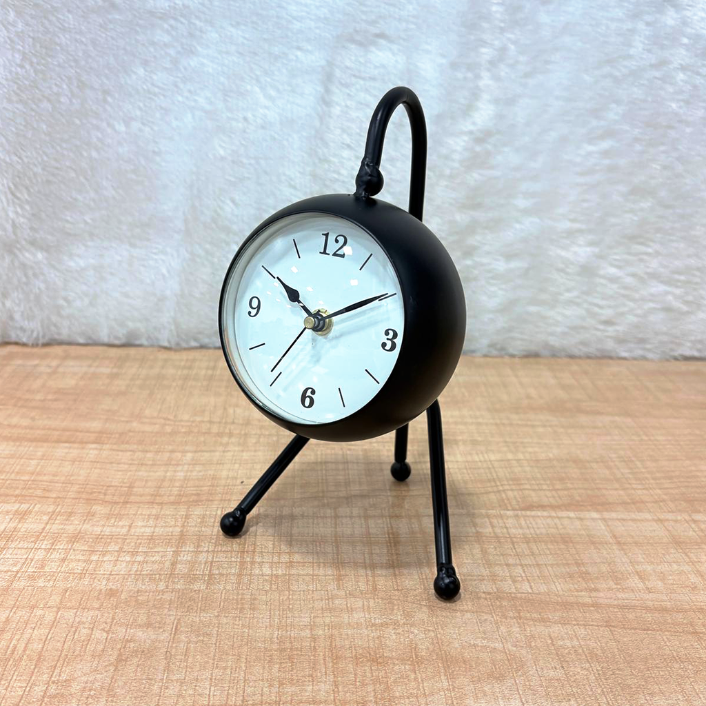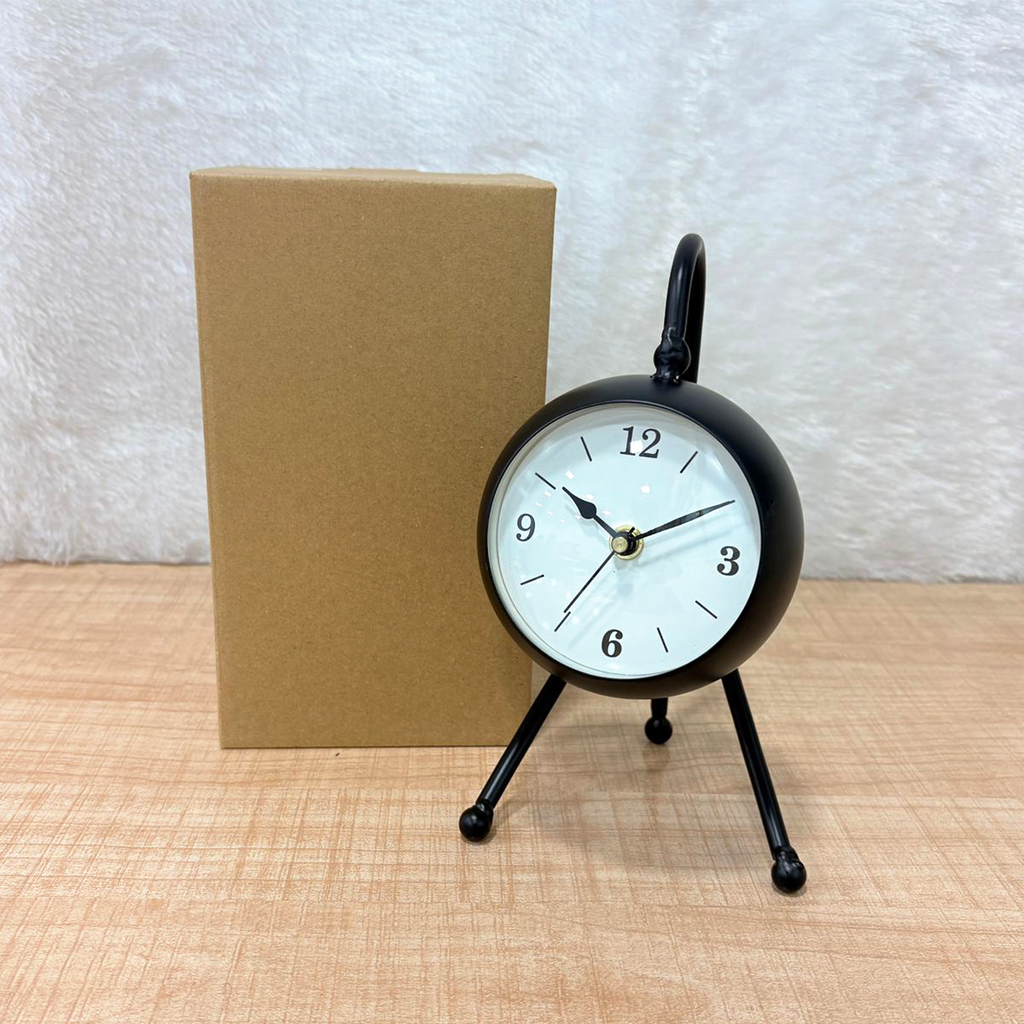 TM0108 Vintage-Style Black Metal Round Table Clock with Tripod Stand - Pack of 1