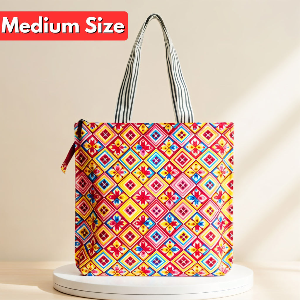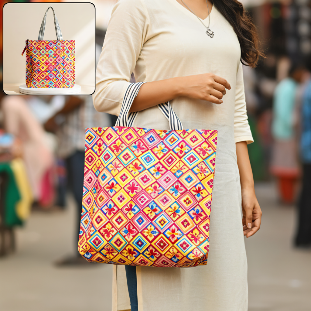 Versatility: This multi-purpose bag is excellent as a reusable shopping tote, a craft supply carrier, a book bag, or a bright, casual everyday carry bag.