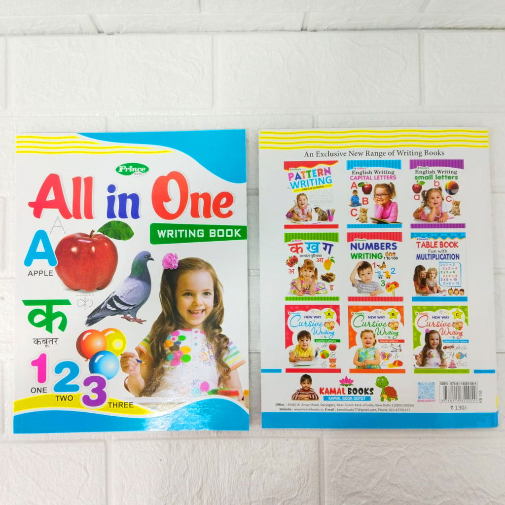 This is a multilingual "writing book" designed to teach basic concepts to children.