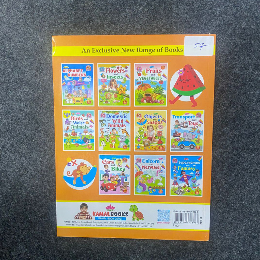 The back cover displays other books in the publisher's "Exclusive New Range of Books," including titles such as Alphabet & Numbers, Flowers & Insects, Fruits & Vegetables, and Transport & Toys.