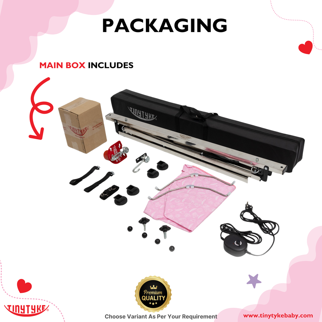 The Automatic Baby Cradle Square Pipe - Semi Foldable is an economical variant of auto swing baby cradles designed by TinyTyke 👶🏻.