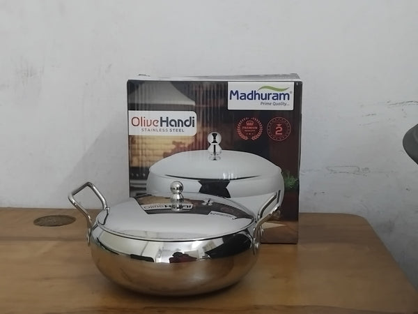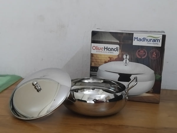 AM2995 Madhuram Prime Quality Olive Handi Stainless Steel (2) With Handle 1 Piece