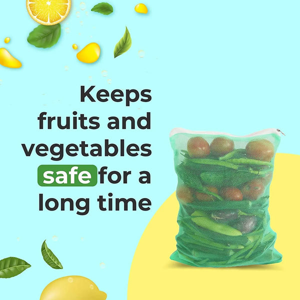 Net bags for vegetables storage help prolong the life and freshness of the Fruits and Vegetables Wash your produce directly in the bags and then place them straight into the fridge. More savings, less food wasted and great for the environment freezer bags