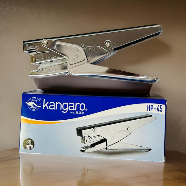 - Package Includes : Kangaro HP-45 All Metal Stapler ; Loading Capacity: 50 Staples; Stapling Capacity Of 30 Sheets ; Stapling Type : Coventional ; Loading Type : Manual ; Meterial : Alloy Steel & Plastic Body ; Style : Classic ; Color May Vary As Per Availability.