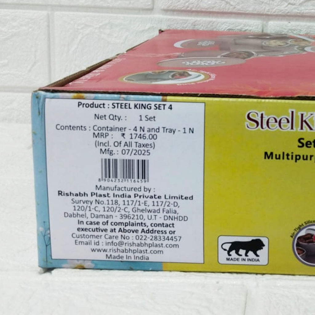 Di0189 Rishabh Steel King Deluxe 4-Piece Multipurpose Container With Tray Set