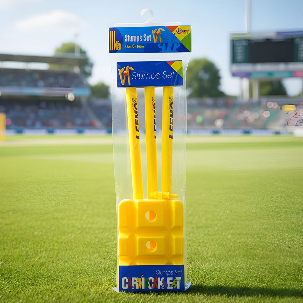 AM6510 Plastic Cricket Stumps Set - Big (3 Wickets, 1 Base, 2 Bails) - Age 10+ Years