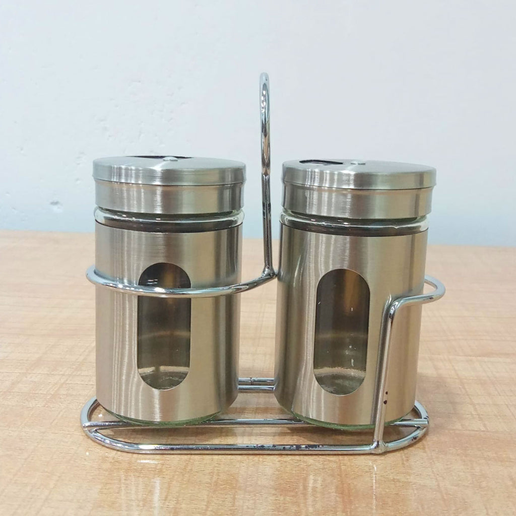 AM5980 Salt & Pepper Sprinkler with Stainless Steel Lid and Rack - Set of 2