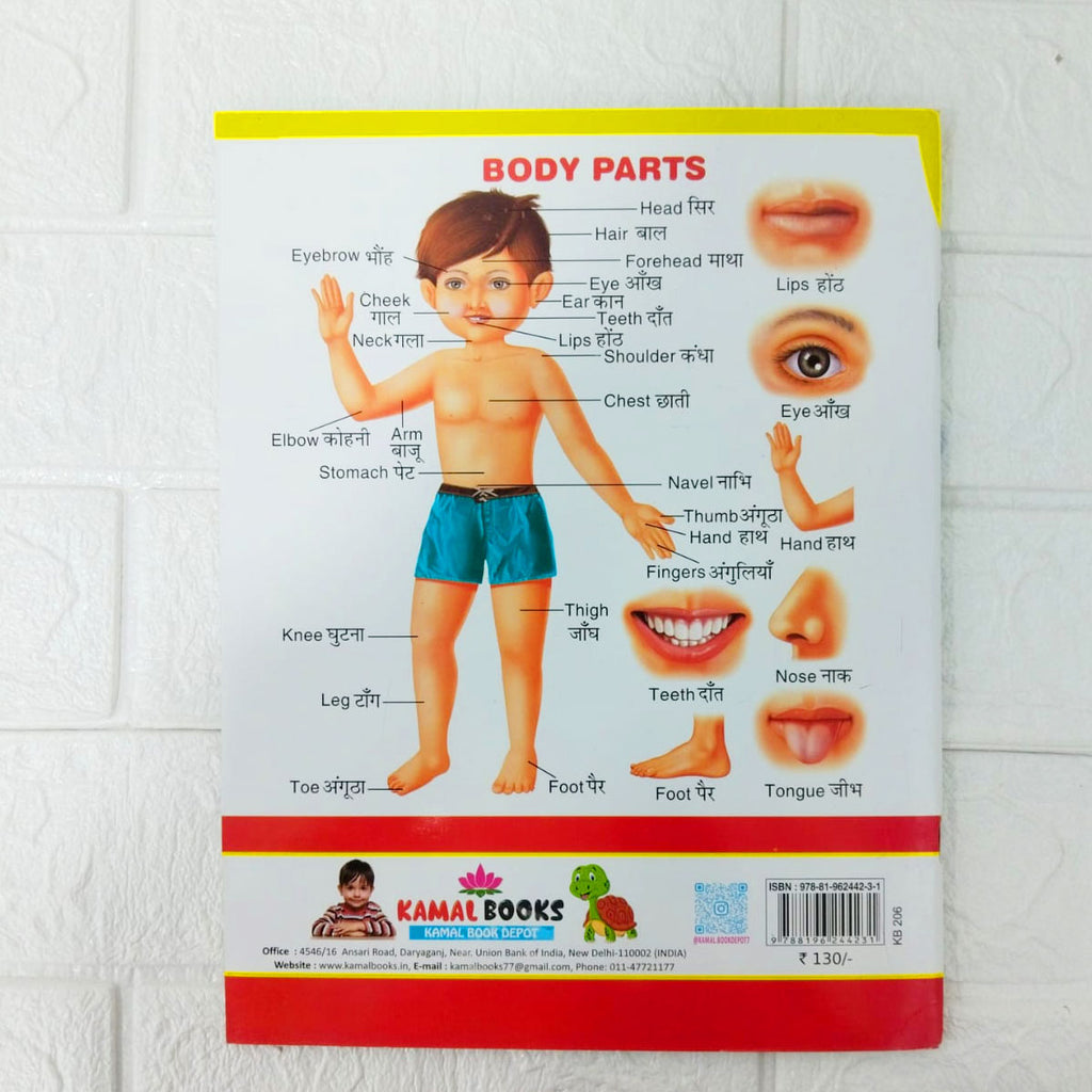 This is a comprehensive, bilingual (English-Hindi) educational book for children.