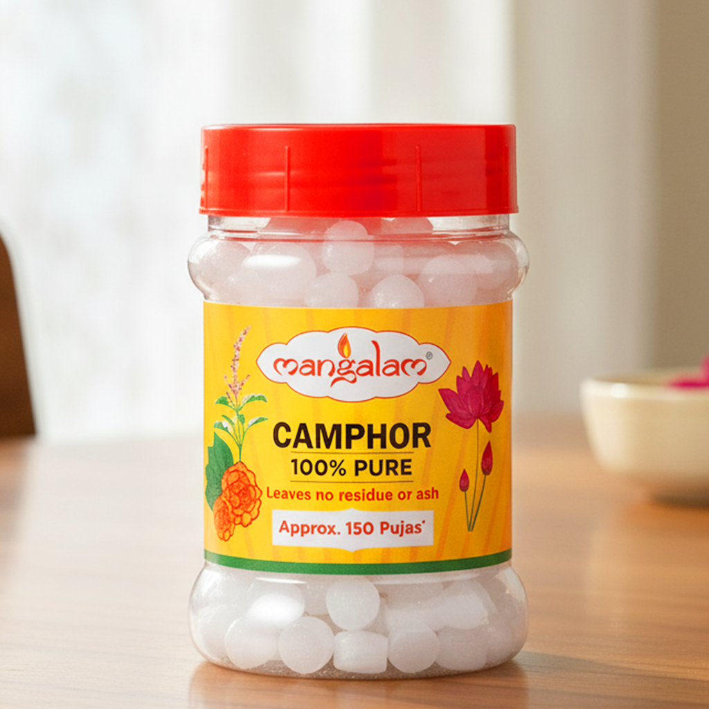 - NO DANGEROUS CHEMICALS: Mangalam Camphor is Pure and is made from 100% camphor, which is derived from the pine tree. Locally available camphor can have fillers and other chemicals which are cancer causing and dangerous to breathe. Mangalam Camphor also supplies its material to leading pharmaceutical companies such as P&G and GSK and is therefore 100% safe and compliant