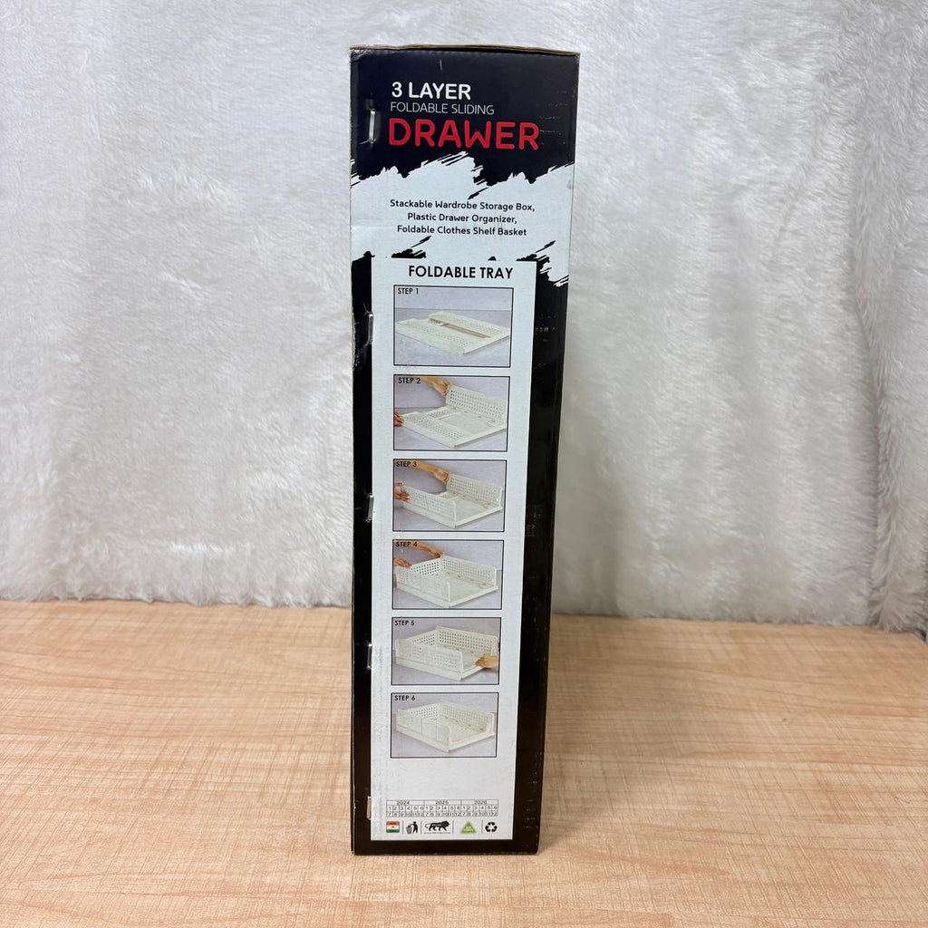 7732 3 Layer Clothes Organizer for Wardrobe Cupboard Organizer for Clothes Foldable and Stackable Closet Organizer Drawer Organizer for Clothes, Multi Purpose Plastic Drawer