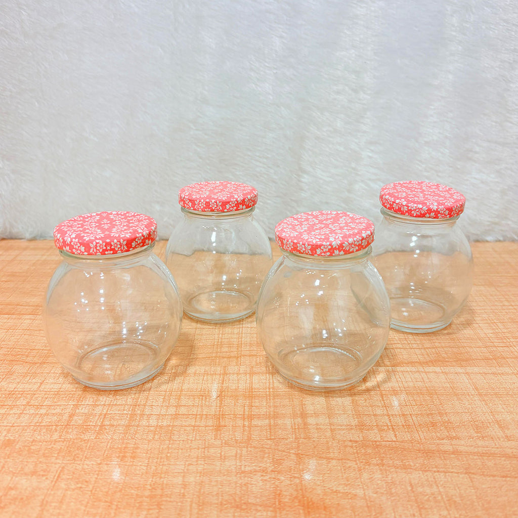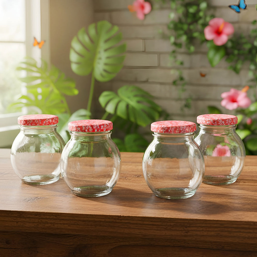 AM6519 YERA Lucia Jars - Round Glass Storage Jars with Floral Print Lids (Set of 4)