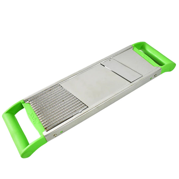 Whether you're slicing potatoes, cucumbers, carrots, or preparing snacks like chips or fries, this slicer ensures uniform thickness and precision cuts every time. Its robust frame and anti-slip grip handles ensure safe operation and long-term use in both domestic and professional kitchens.