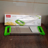 The Apex Stainless Steel S.S. Slicer is a premium kitchen tool designed for performance and durability. Made with a stainless steel body and fitted with unbreakable ergonomic handles, this slicer is perfect for everyday slicing tasks. It features dual interchangeable blades—a plain slicer for regular cuts and a ripple slicer for stylish wavy chips or decorative vegetables.