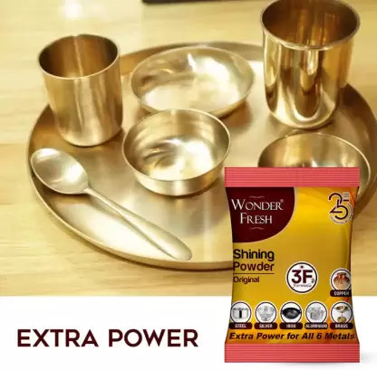 You will see the difference in minutes. Metal cleaning / shining powder. Mostly used for Pooja items and utensils cleaning. Suitable for brass, copper, aluminum, steel, silver, and iron. Cleans, protects, preserves and restores the shine and luster to a variety of different surfaces
