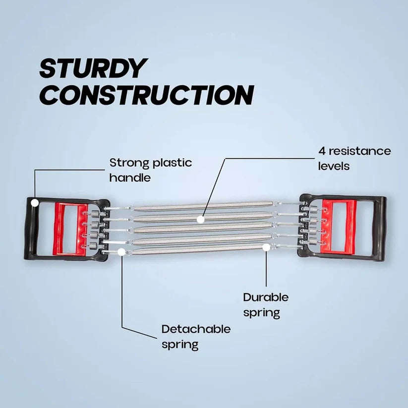 Build powerful upper-body strength at home with this classic 5-spring chest expander. The robust steel coil springs deliver smooth, progressive resistance while the detachable design lets you customize intensity by adding or removing springs as you progress. Broad, non-slip handles provide a secure and comfortable grip for wide, narrow, and diagonal pulls, helping you target chest, lats, shoulders, traps, biceps, and triceps through multiple movement patterns. Compact and portable, it fits easily in a drawer or gym bag and requires no setup, making it perfect for warm-ups, strength sets, mobility work, and conditioning sessions wherever you train.