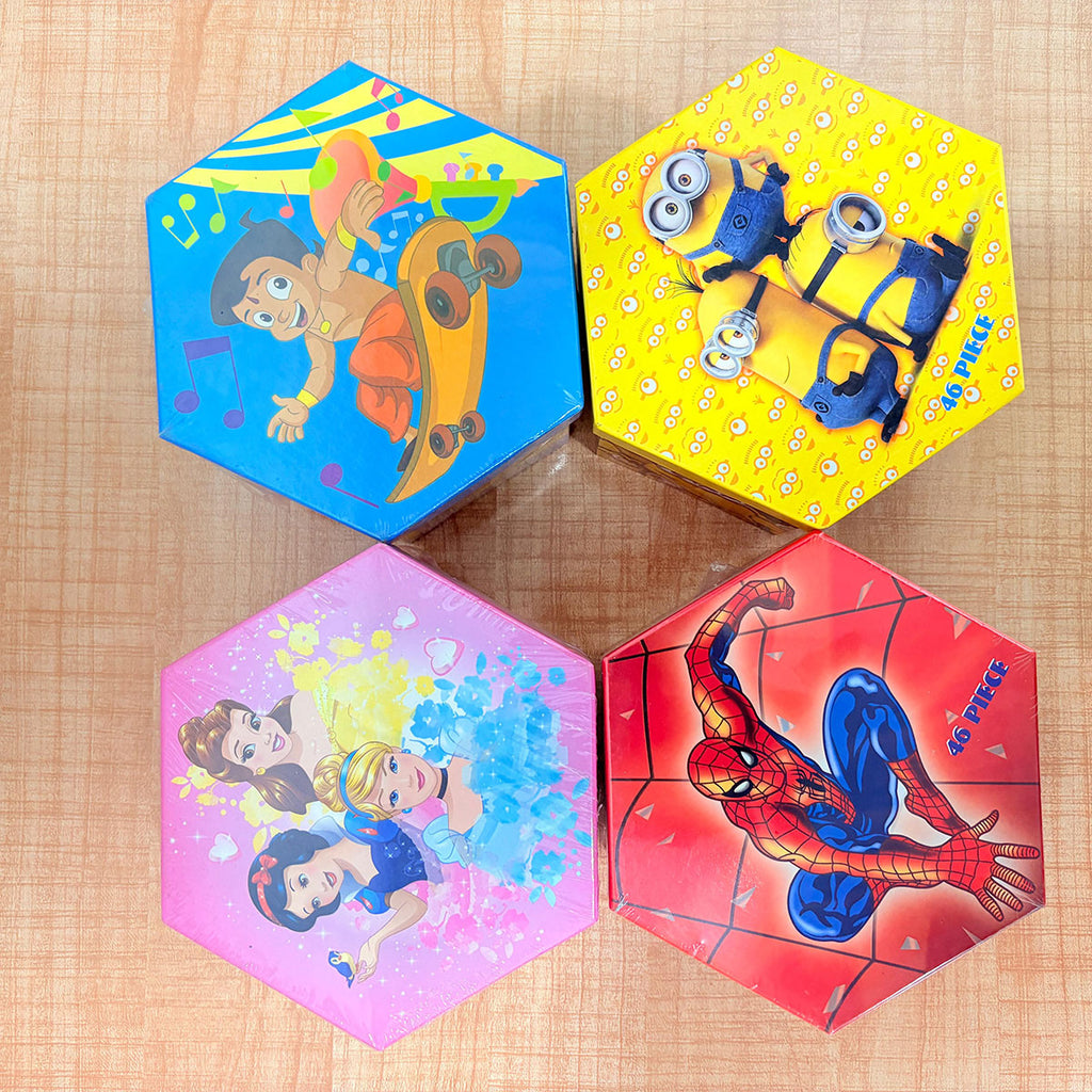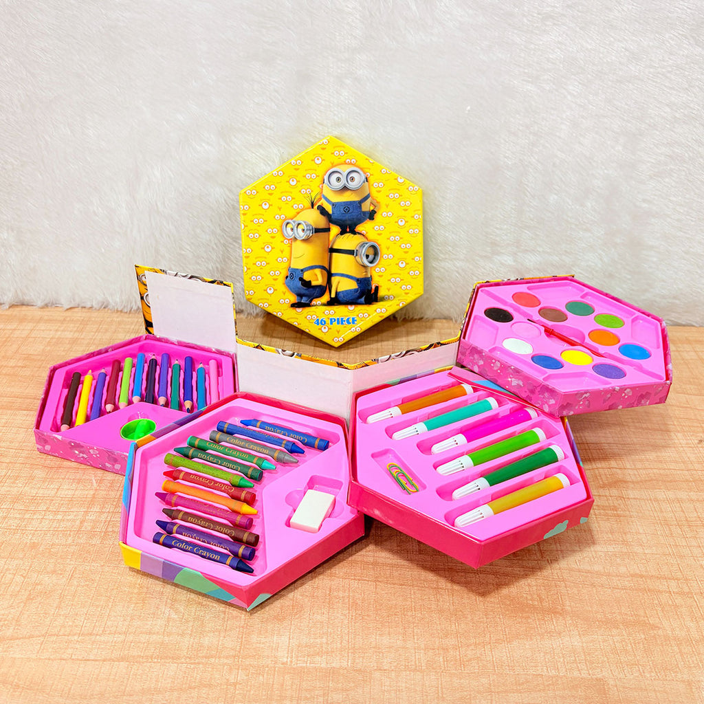 - Colour box with 46 pieces art set includes multiple coloured pens, crayons, water colours, oil pastes, pencils