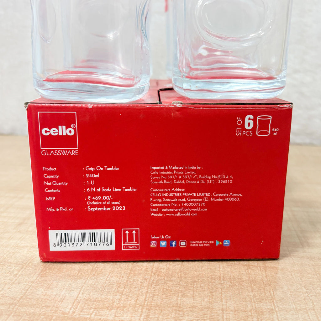 AM2598 CELLO Gripper Juice Glass Tumbler 240ml 6 pcs set