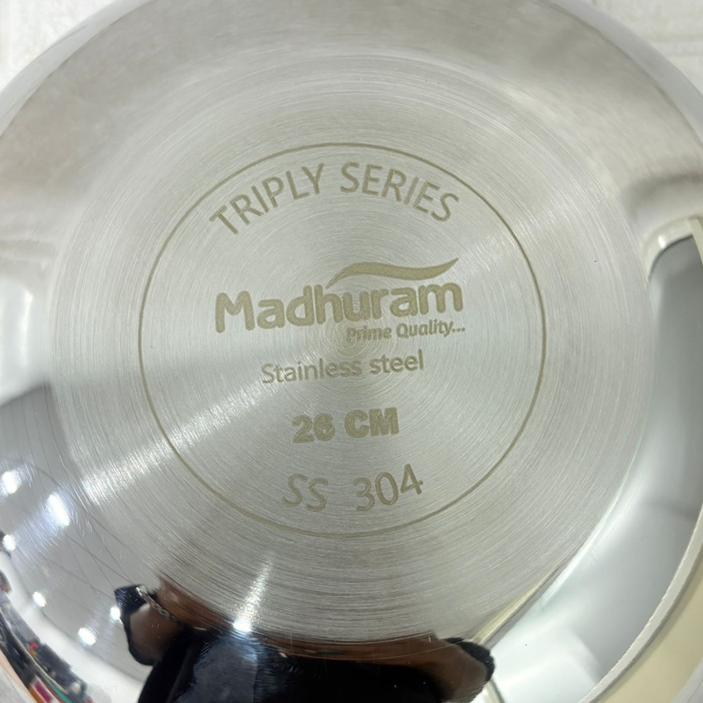 AM2958 Madhuram Prime Quality Triply Stainless Steel Kadai WithOut Handle (26 cm)