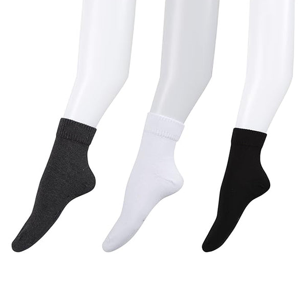 - Content : 3 Pairs of Socks | Size: Free Size | Length - Ankle | Color: Black, Dark blue , Grey Melange | Material: Combed Cotton