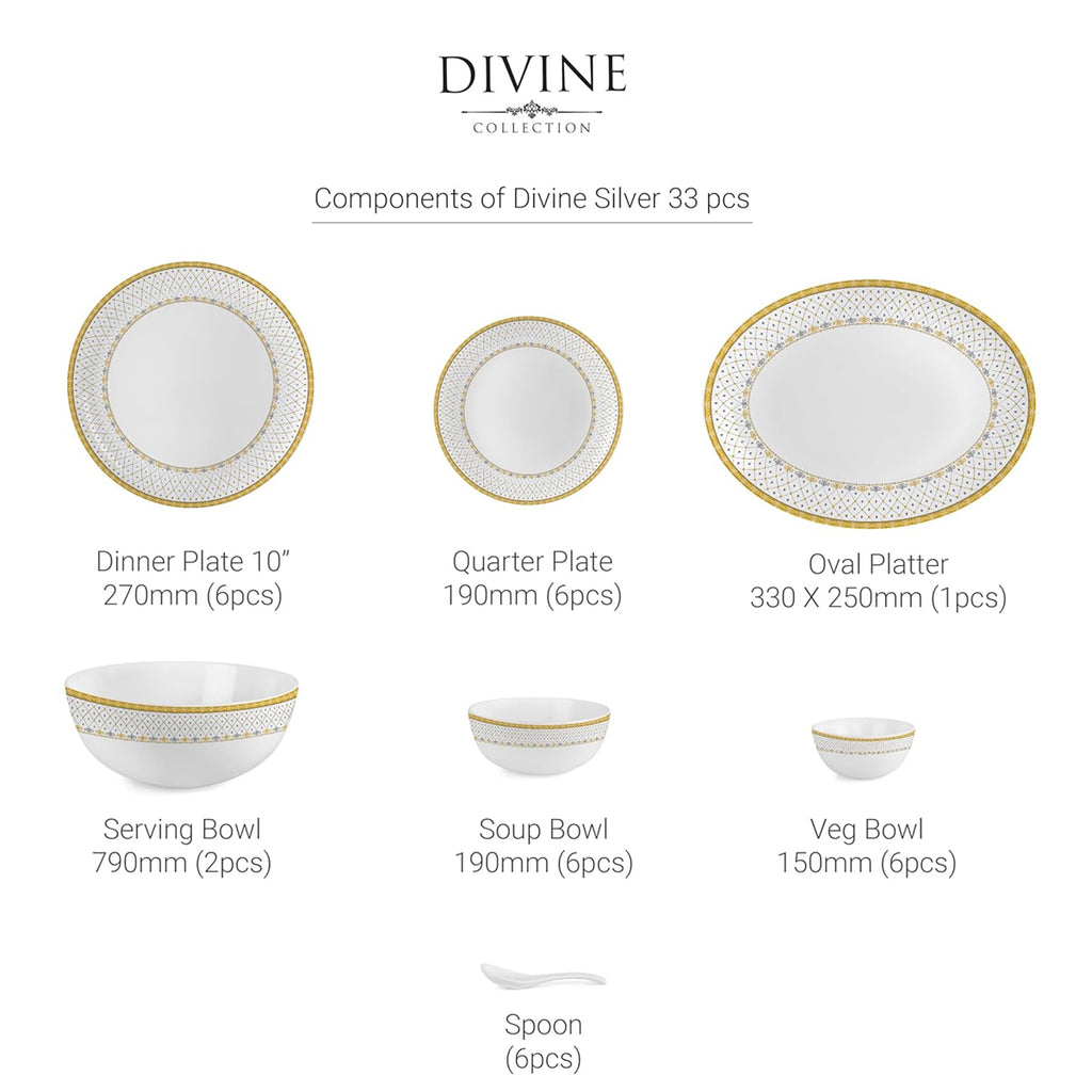 AM5753 Cello Opalware Divine Infinity Dinner Set, 33 Units
