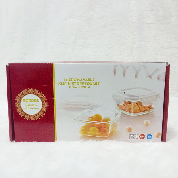 AM6185 Borosil Klip n Store Square Glass Container Set of 2pc (320ml+520ml)