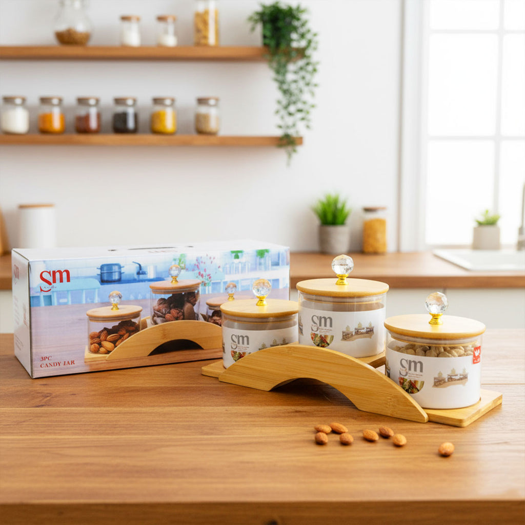 AM6270 Shine Mix Candy Jar Set 3PC with Bamboo Stand