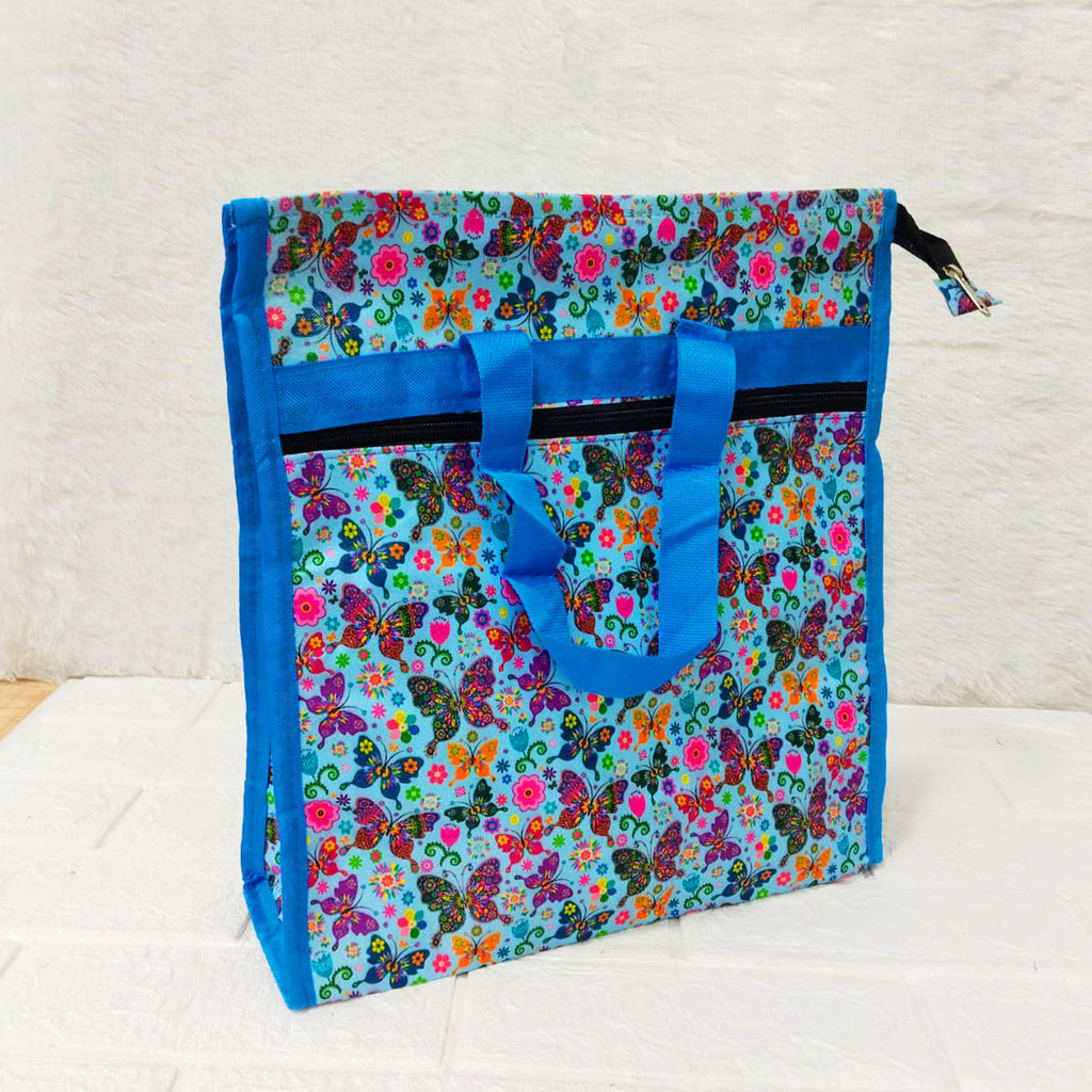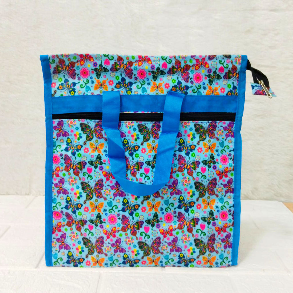 • Design: The striking print makes this bag a cheerful statement piece. The main color is a bright blue, complemented by a rainbow of colors in the butterfly and flower pattern.