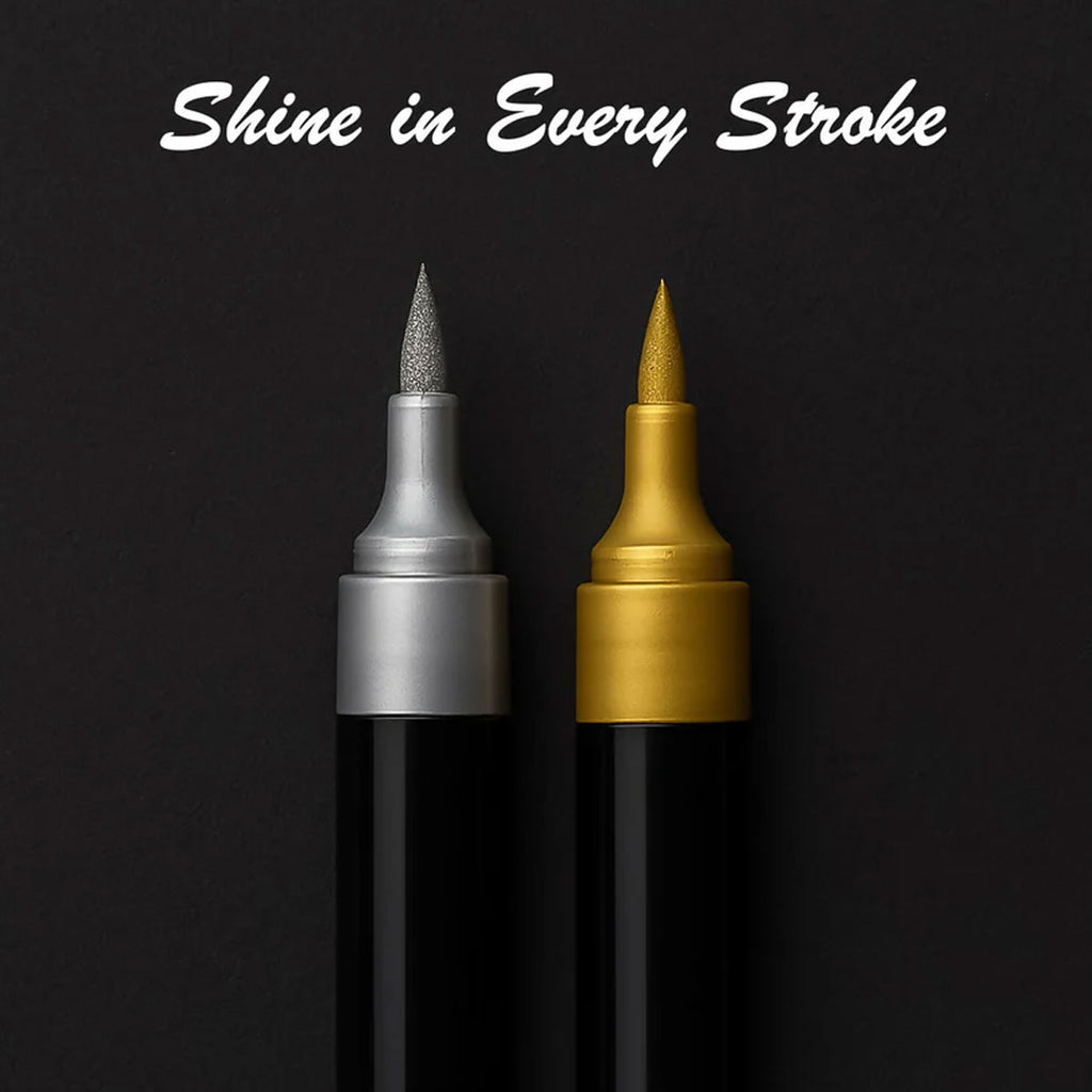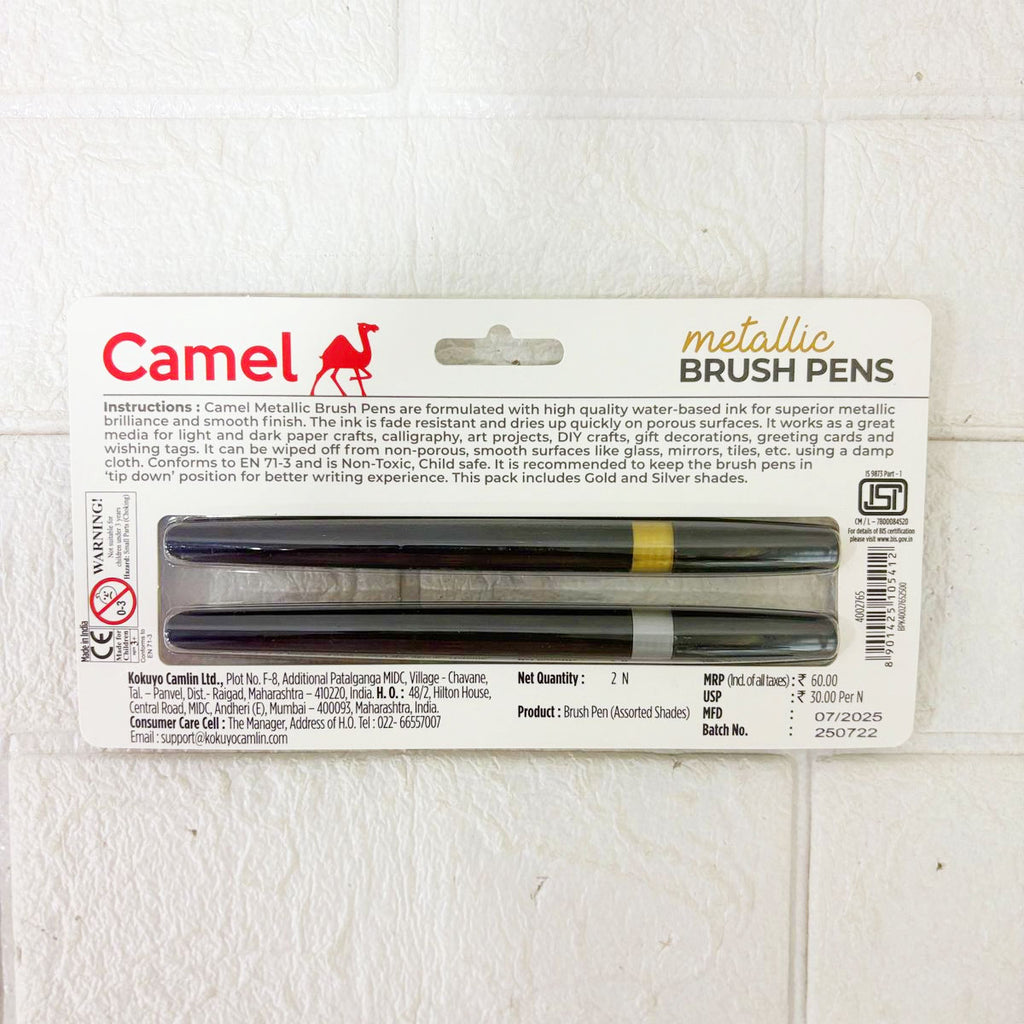 AM6298 Camel Metallic Brush Pens 2 Shades Gold & Silver