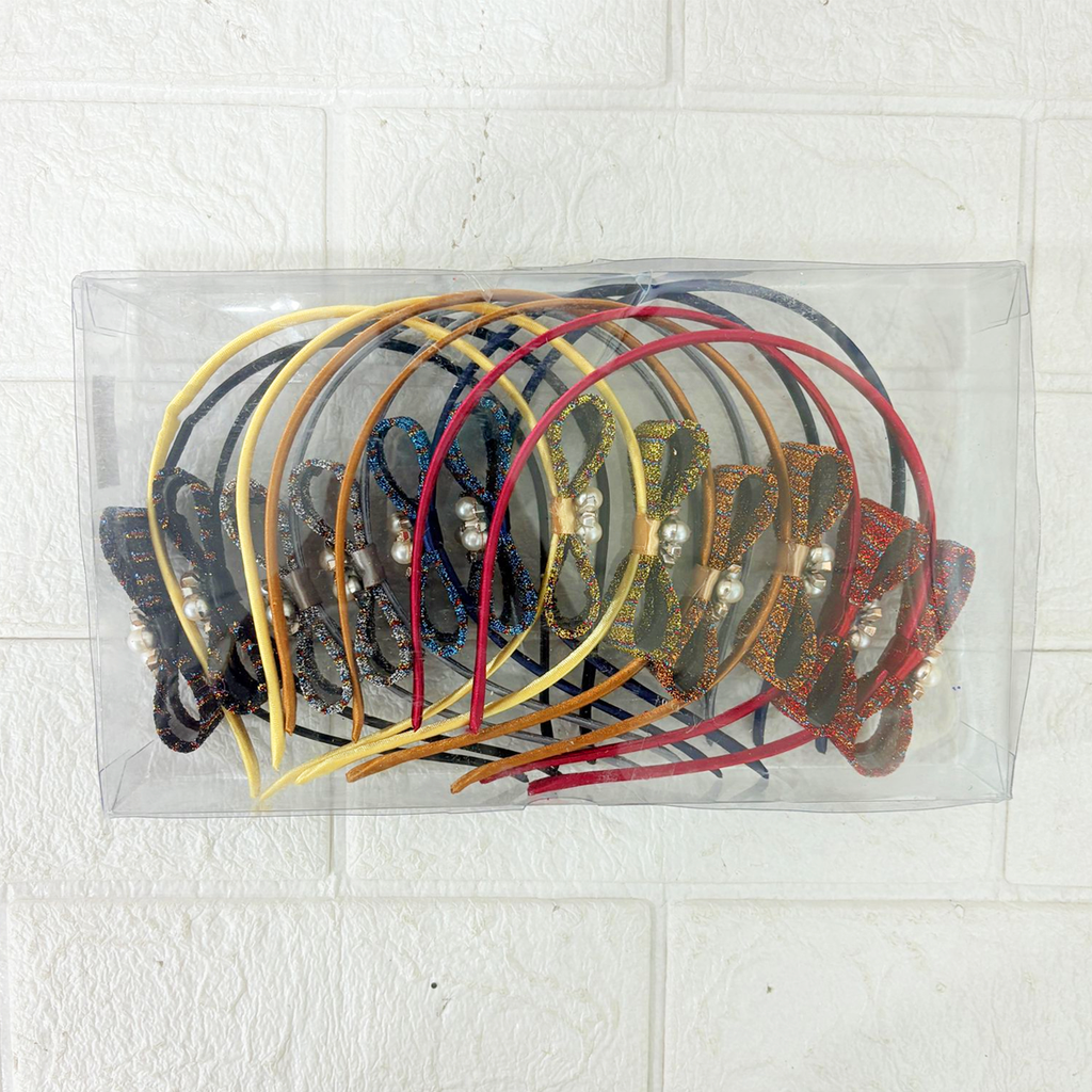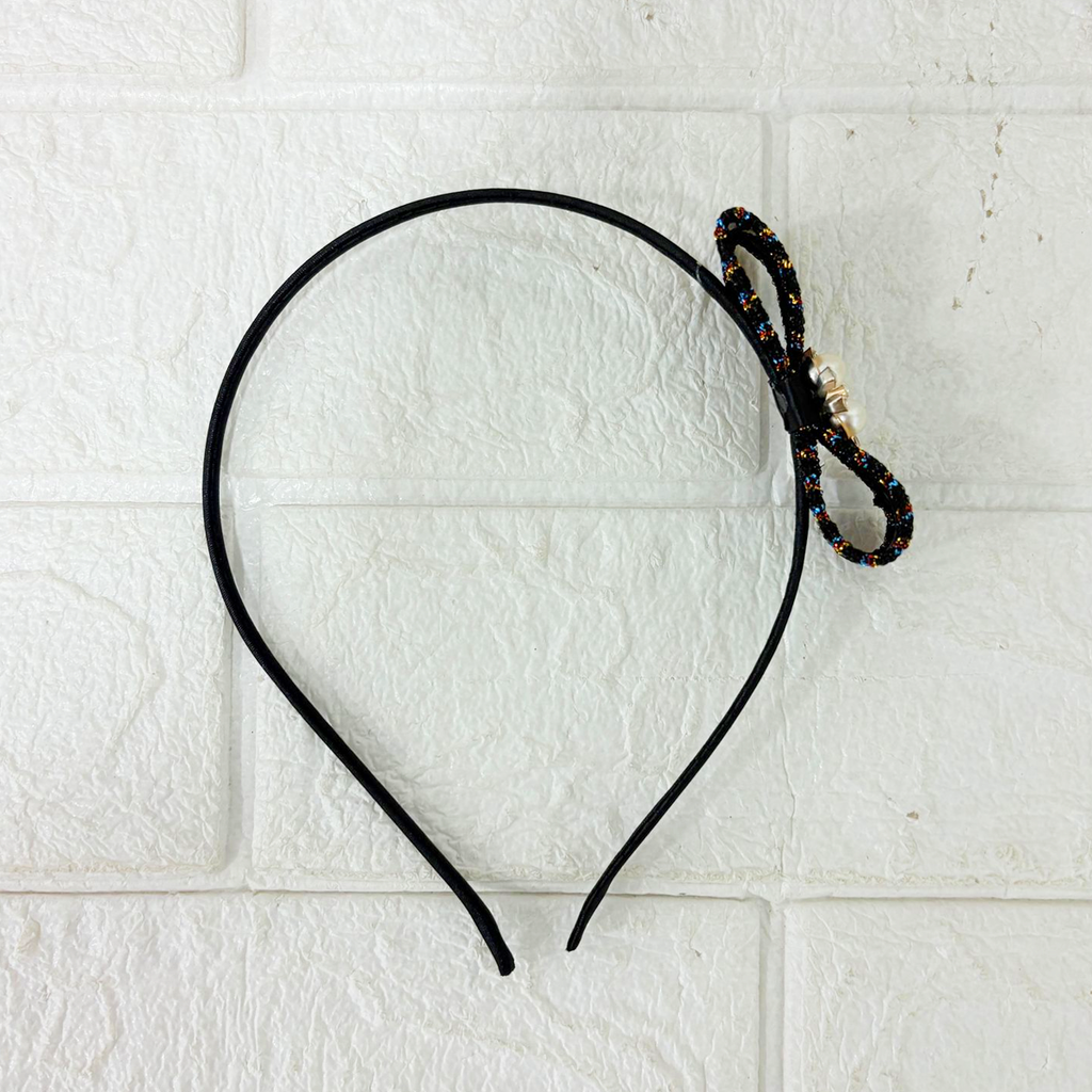AM6380 Multicolour Elegant Glitter Bow Hairband with Pearl & Stone Centerpiece