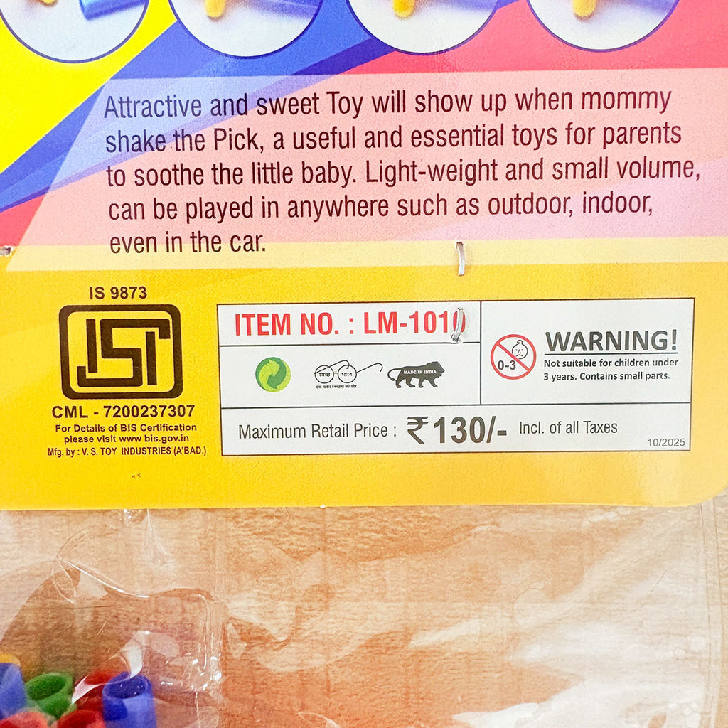 • Components: Consists of colorful plastic pipes (in red, yellow, green, and blue) and a bag of yellow connector blocks (flower/star-shaped).
