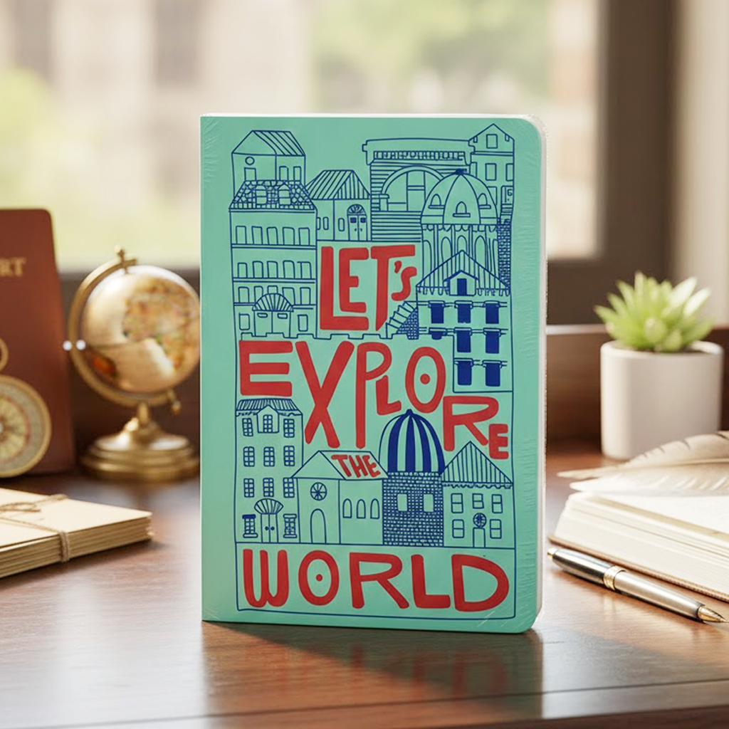 Create your own world with the Let's Explore World A5 Notebook. Designed with a sleek UV finish and 192 pages, this notebook gives you the space to express, plan, and dream.