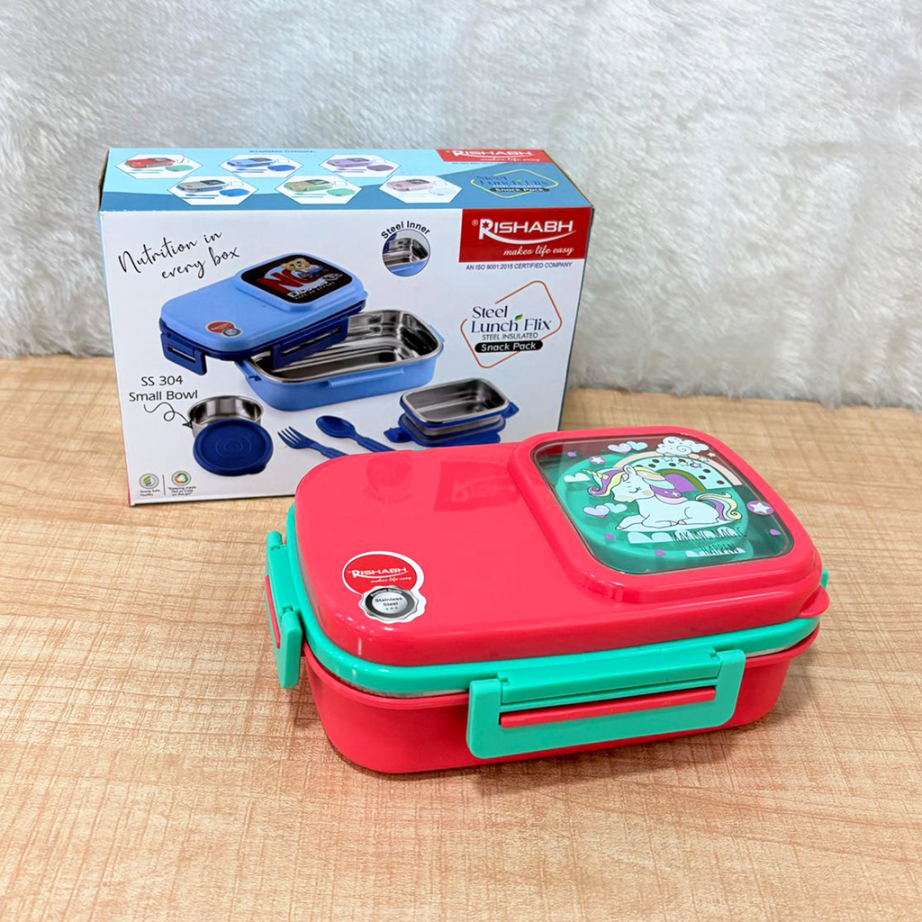 AM6753 Rishabh Steel Lunch Flix: Insulated SS 304 Snack Pack for Kids