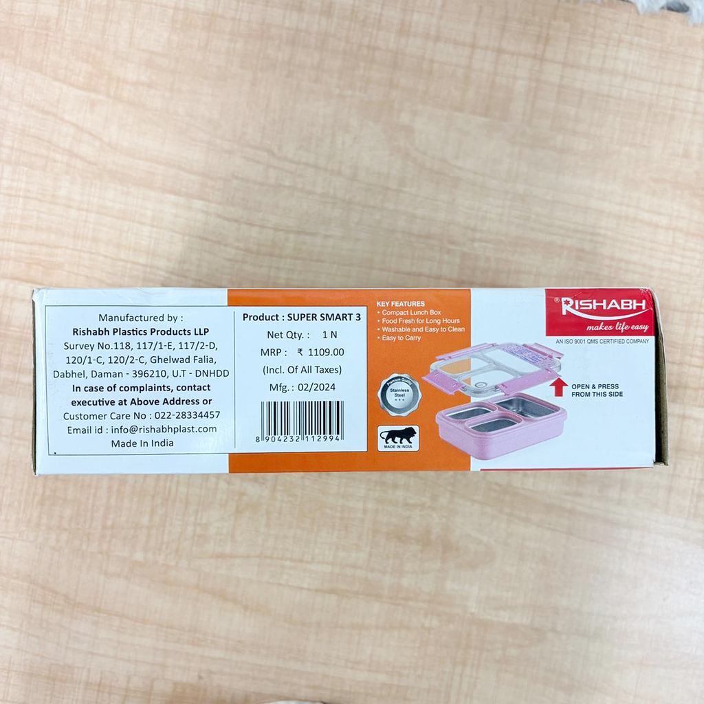 AM6757 Rishabh Super Smart 3 Steel Inner Insulated 3-Compartment Lunch Box