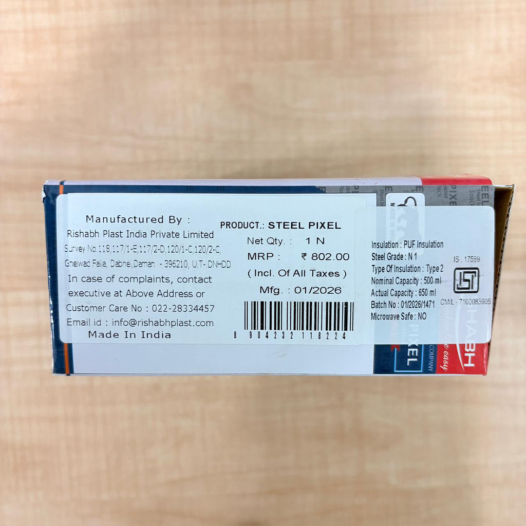 AM6758 Rishabh Steel Pixel Insulated Steel Snack Pack Lunch Box (650ml)