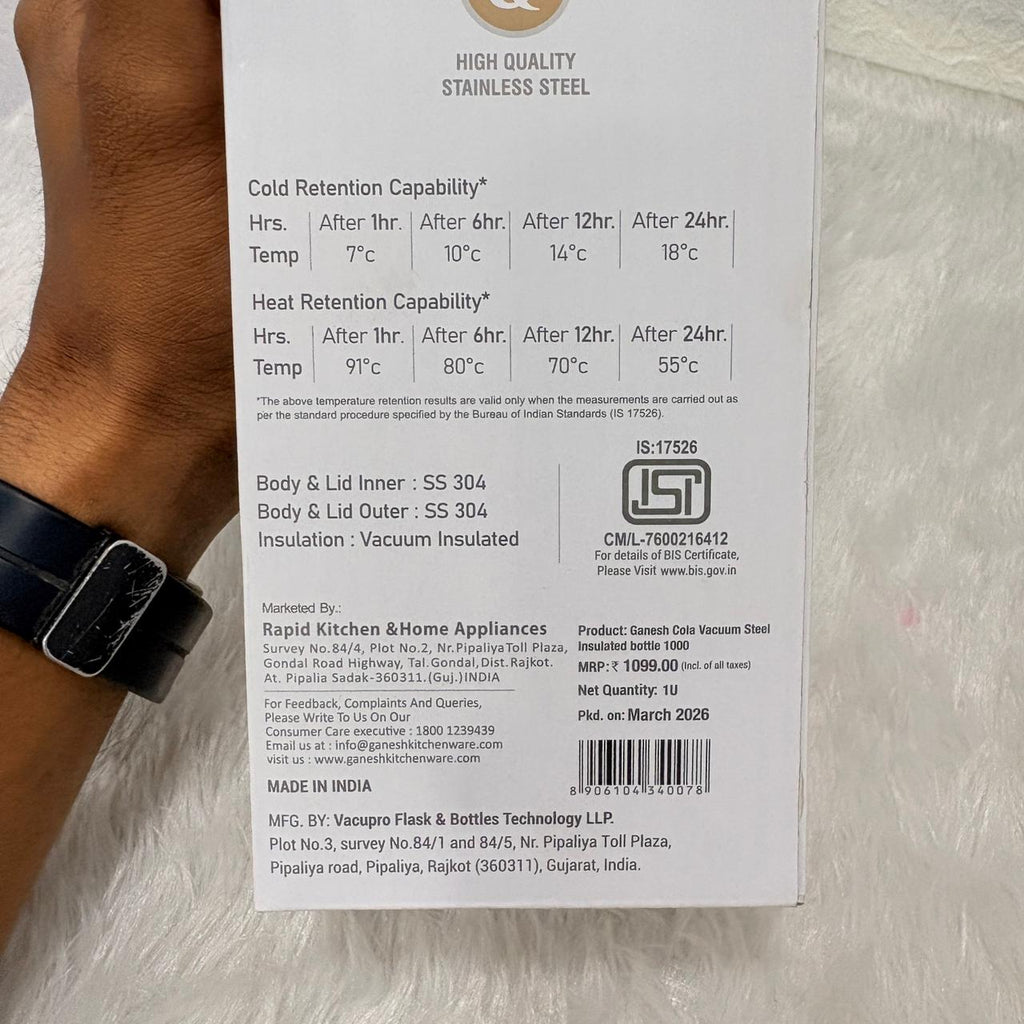 AM7279 Ganesh Cola 1000 Vacuum Insulated Steel Water Bottle - 1000ml