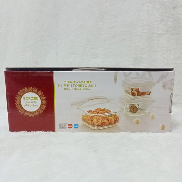 AM6183 Borosil Klip n Store Square Glass Container Set of 3pc (320ml+520ml+800ml)