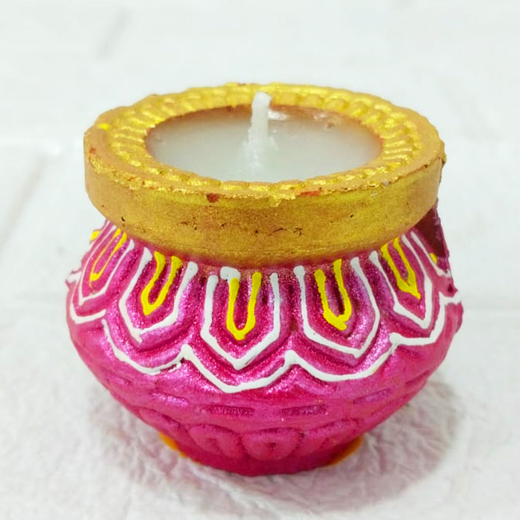 Di0384 Handcrafted Diwali Matka Style Wax Diyas – Multidesign Colorful