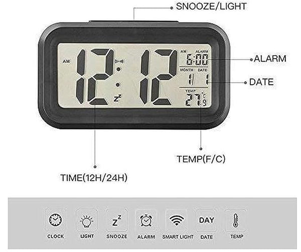 3159 Digital LCD Alarm Smart Clock with Calendar and Temperature Sensors