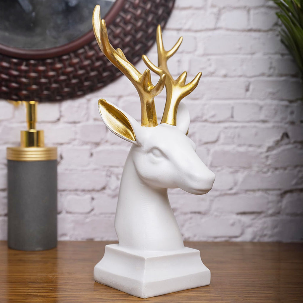 Color Scheme: High-contrast design with a sleek white finish on the body and ears, beautifully accented with metallic gold on the prominent antlers and inner ears.