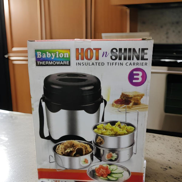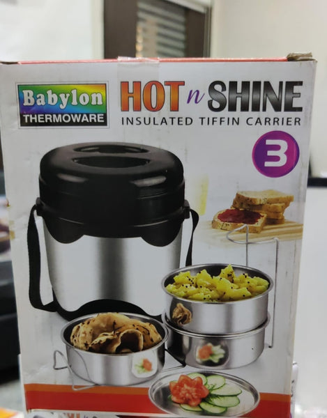Mirror Finished Insulated Tiffin Carrier Is Specially Made...... Keeping You In mind. You can use it to carry your fresh and healthy food to your factory, Offices, School, Picnics, Tours, Travels Etc A Sturdy Belf Is Provided To Carry It at any time where for your purpose. Always transfer your hot food from the cooking vessel into this tiffin carrier to get the best performance